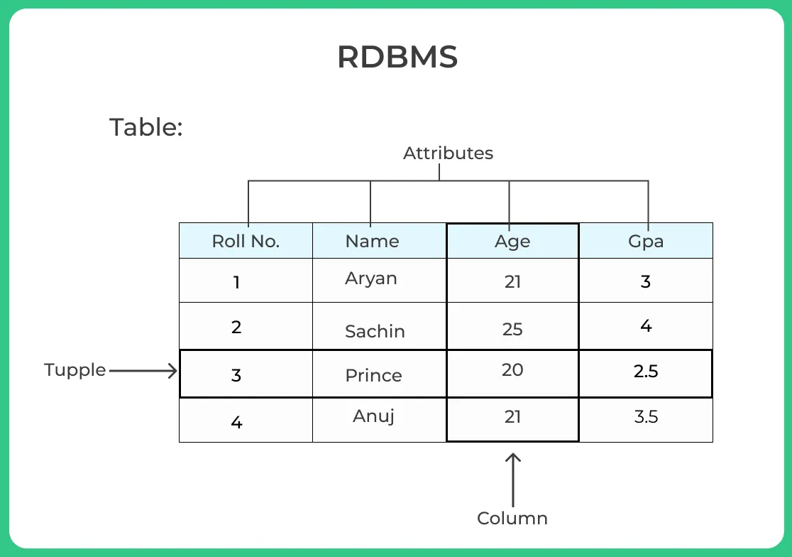 RDBMS(관계형 데이터베이스 관리 시스템)는 표 형태로 데이터를 구조화하고 관리하는 데이터베이스