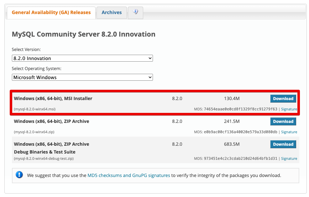 MySQL Community Server 선택:
