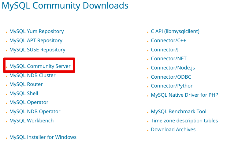 먼저 MySQL 공식 웹사이트로 이동합니다. MySQL Downloads 페이지로 이동합니다.