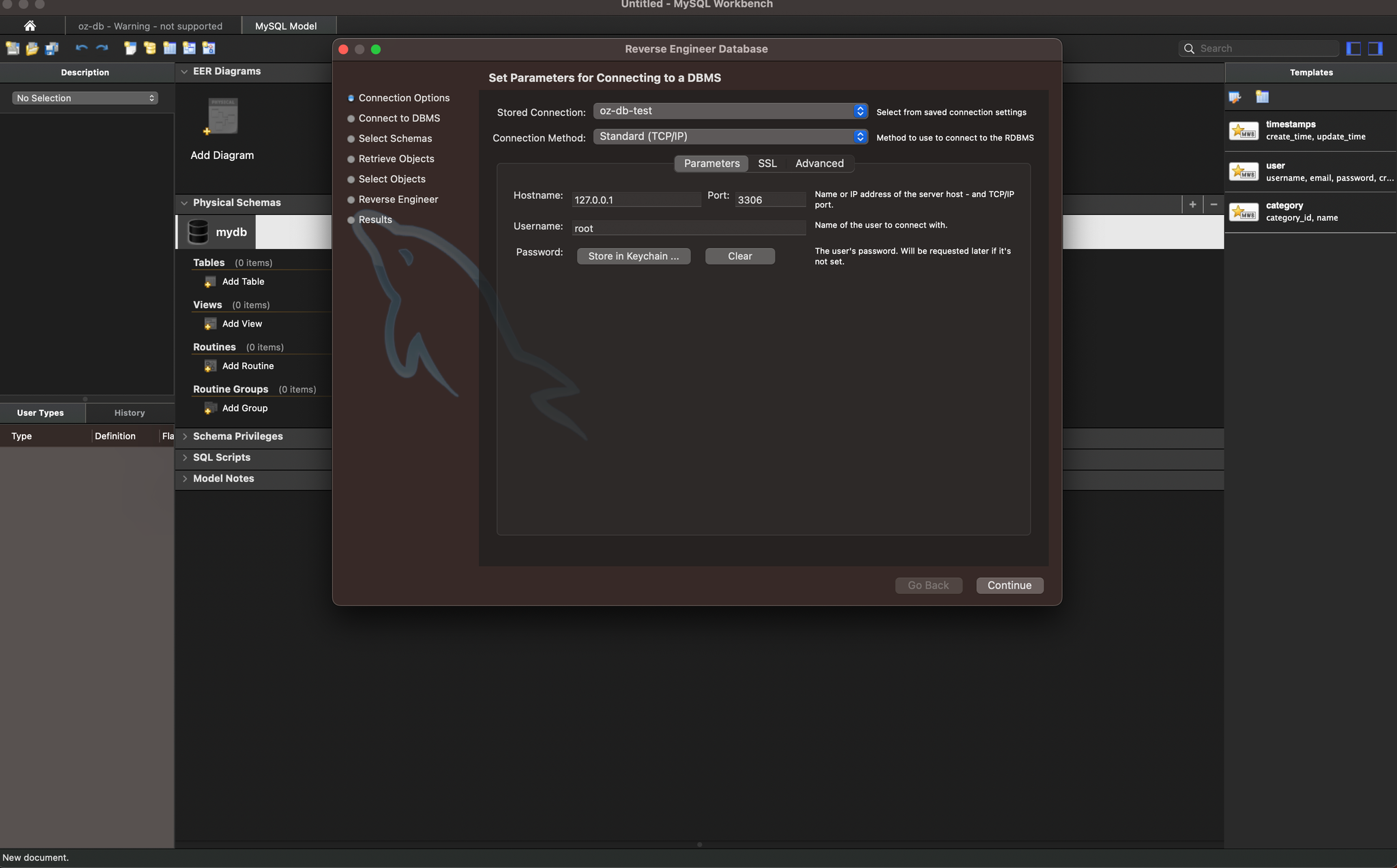 Continue를 클릭하면 되는데, 불러오고자 하는 데이터 베이스만 선택을 해주면 됩니다.